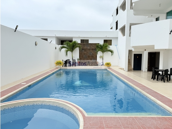 El departamento tiene una área de 94 m², con alícuota de $70 y piscina dentro del edificio. Ideal para vivir, vacacionar o rentar.