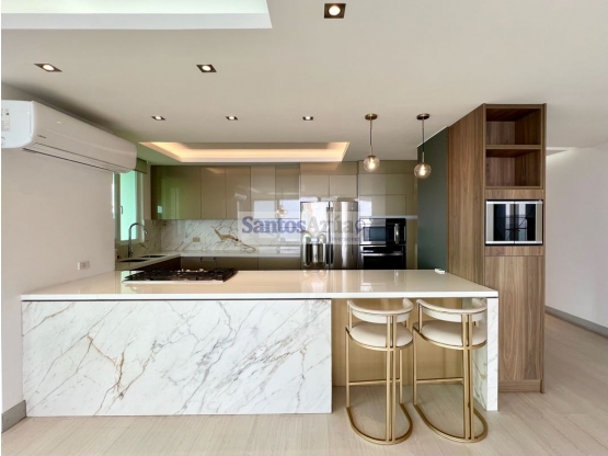 La cocina es un sueño para los amantes del diseño y la funcionalidad: horno, microondas empotrados, estufa, vinera, dispensador de agua, refrigerador, todos incluidos, junto con aires acondicionados en todo el departamento.