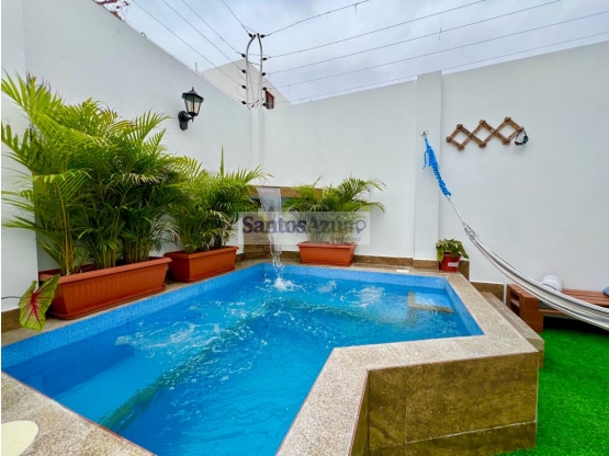 En el exterior encontrarás un patio acogedor tipo oasis, con área de BBQ + horno de leña, jardines laterales con césped sintético, espacio para sentarse, y una piscina pequeña con cascada que también puede funcionar como jacuzzi con la instalación de un calentador. Perfecto para reuniones familiares o relajarte en casa.